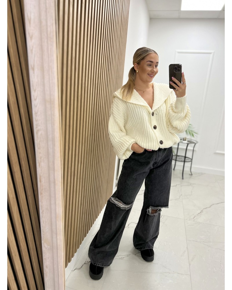Stylowa i kobieca stylizacja, która łączy wygodę z modnym charakterem. Miękki, oversize’owy sweter o grubym splocie idealnie współgra z lekką, zwiewną spódnicą o efektownym kroju. Całość tworzy look doskonały na co dzień, spotkania z przyjaciółmi lub luźne wyjścia w mieście.