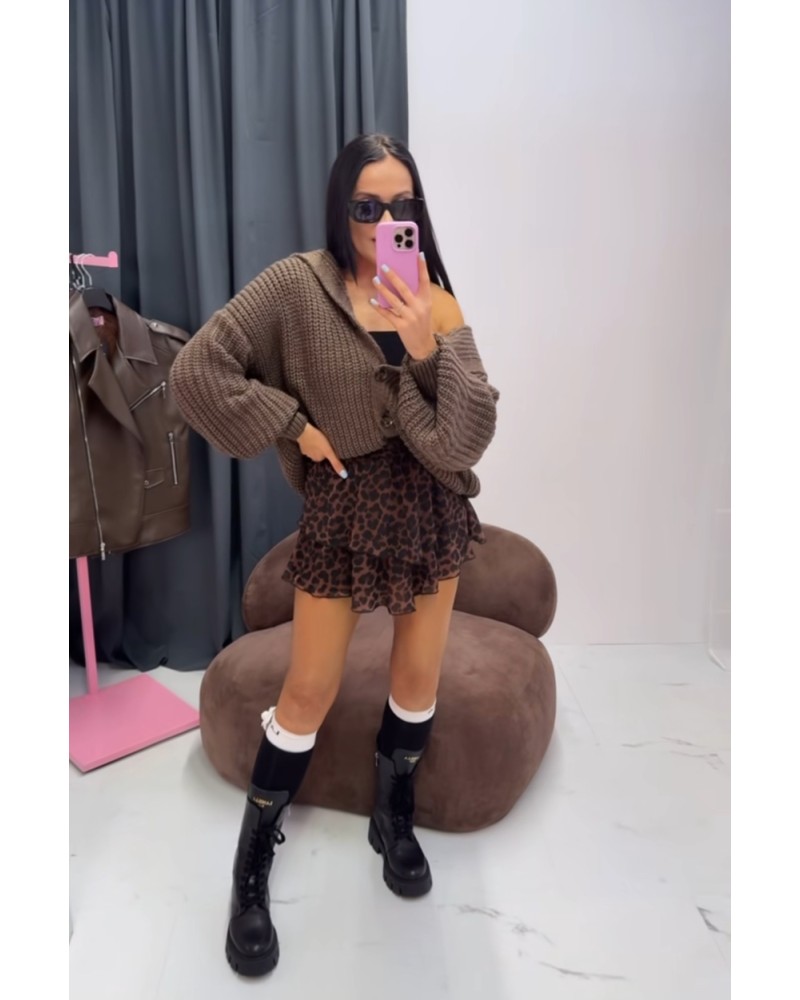 Ta stylizacja to połączenie wygody i nowoczesnego stylu w jednym. Luźny, ciepły sweter o wyrazistej fakturze zapewnia komfort noszenia, a jednocześnie podkreśla nonszalancki charakter zestawu. Zestawiony z lekką, warstwową spódnicą o modnym wzorze tworzy efektowną całość, która świetnie sprawdzi się zarówno w codziennych stylizacjach, jak i podczas nieformalnych spotkań.