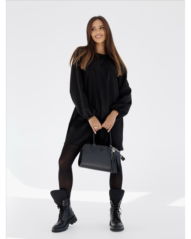 Elegancka, prosta sukienka z długim rękawem o klasycznym kroju. Wykonana z miękkiego, przyjemnego w dotyku materiału, idealnie układa się na sylwetce. Doskonała na co dzień, do pracy lub na spotkania.