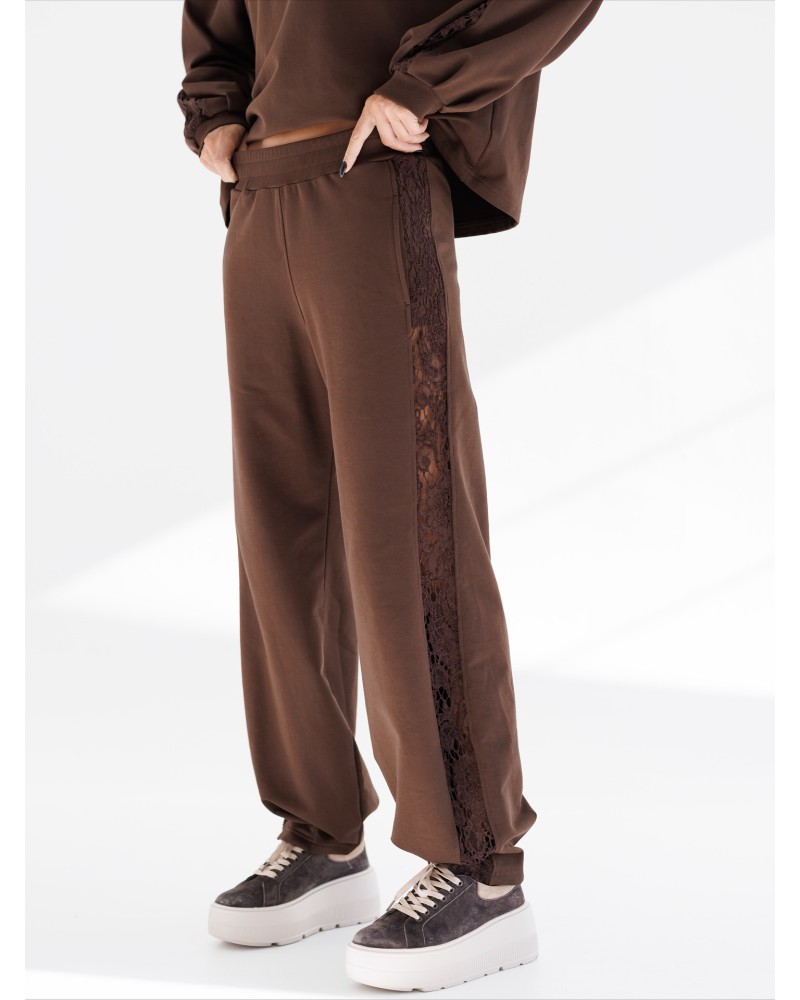 Stylowy komplet dresowy z koronkowymi wstawkami to idealne połączenie wygody i kobiecego wdzięku. Bluza o luźnym kroju i spodnie z elastyczną talią gwarantują komfort oraz swobodę ruchów, a delikatne koronkowe detale dodają zestawowi wyjątkowego charakteru.