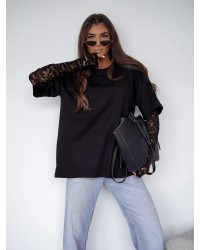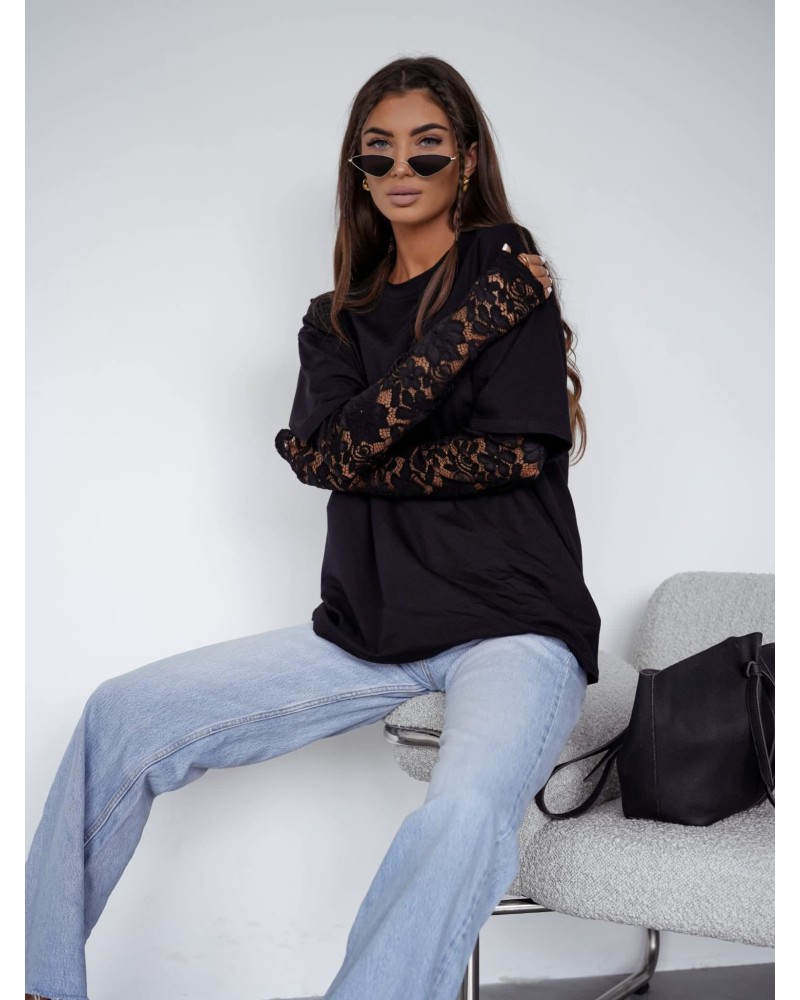 T-shirt z koronkowym rękawem czarny