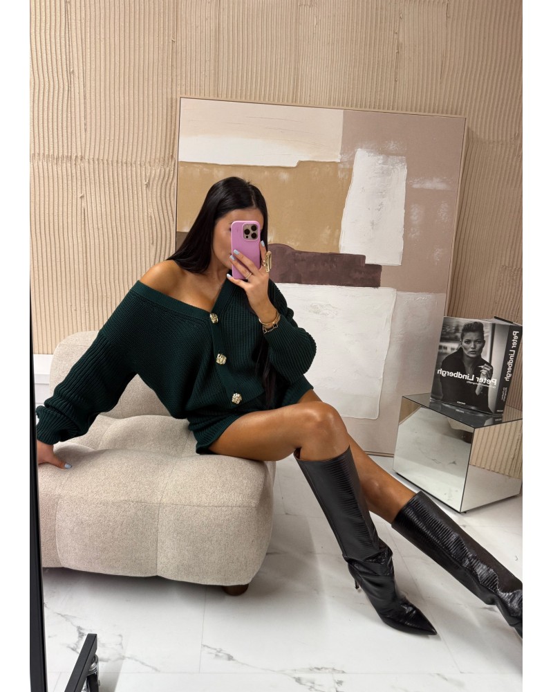 Stylowy komplet dzianinowy z guziczkami, składający się z swetra i krótkich spodenek. Idealne połączenie kobiecego stylu, wygody i nowoczesnego designu – doskonały zarówno na co dzień, jak i na wyjątkowe okazje.
